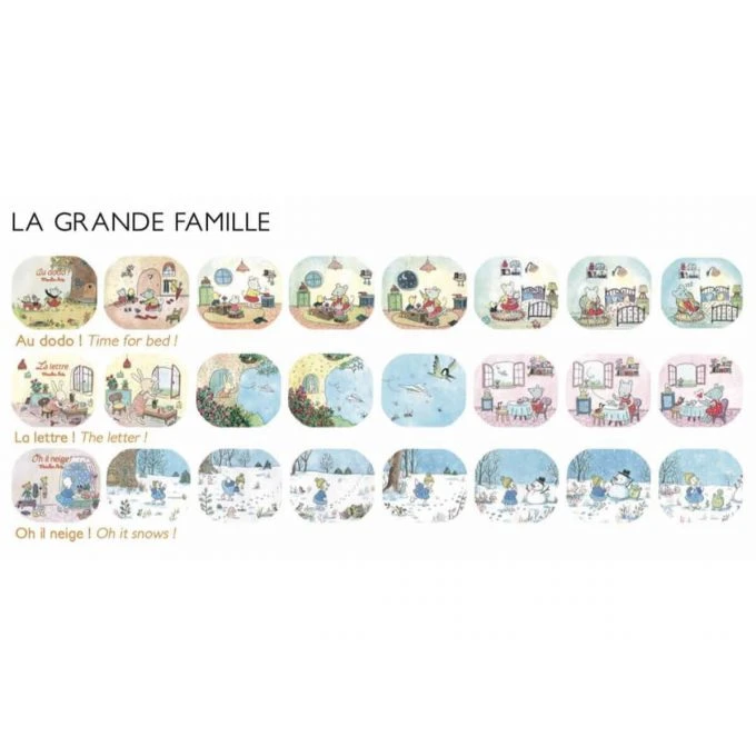 A box with 3 discs with images of stories starring the characters from the La Gran Familia collection. Compatible with all Moulin Roty story projector lamps. Ideal for explaining stories in bed before going to sleep.