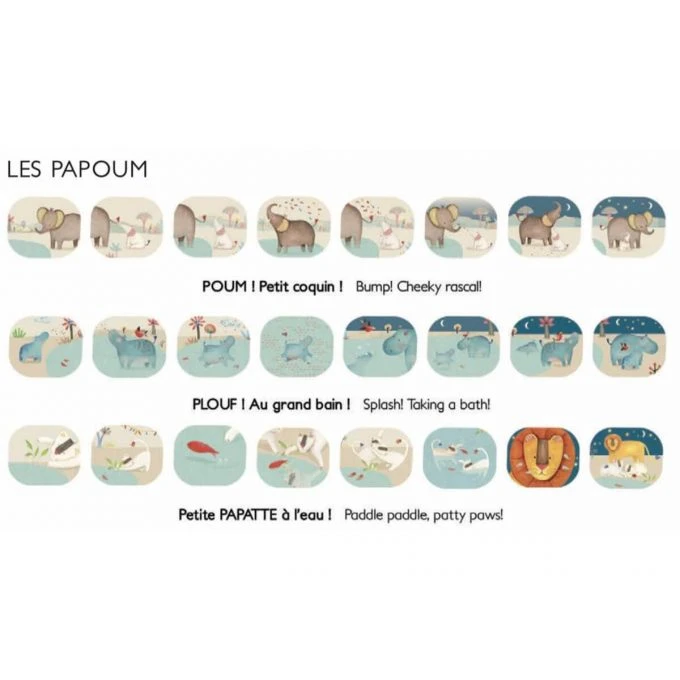 A box with 3 discs with images of stories starring the characters from the Papoum collection. Compatible with all Moulin Roty story projector lamps. Ideal for explaining stories in bed before going to sleep.