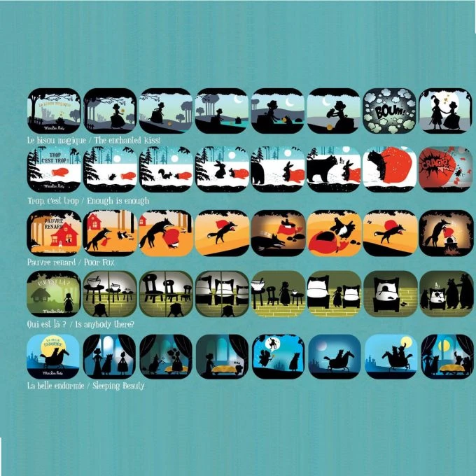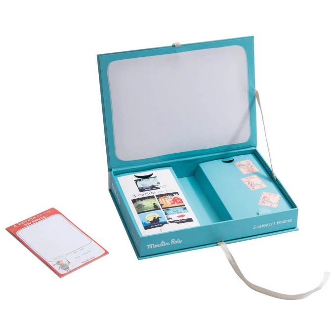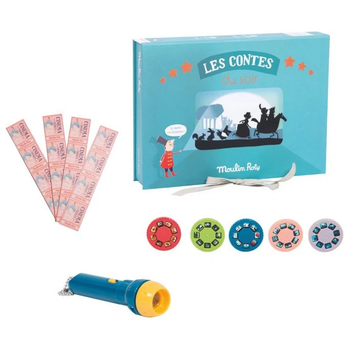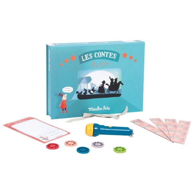 The best way to make a home theater session. Unlike other lanterns, this one projects the shadows of the characters in a colorful setting. The box contains 5 different stories, tickets and a notepad.