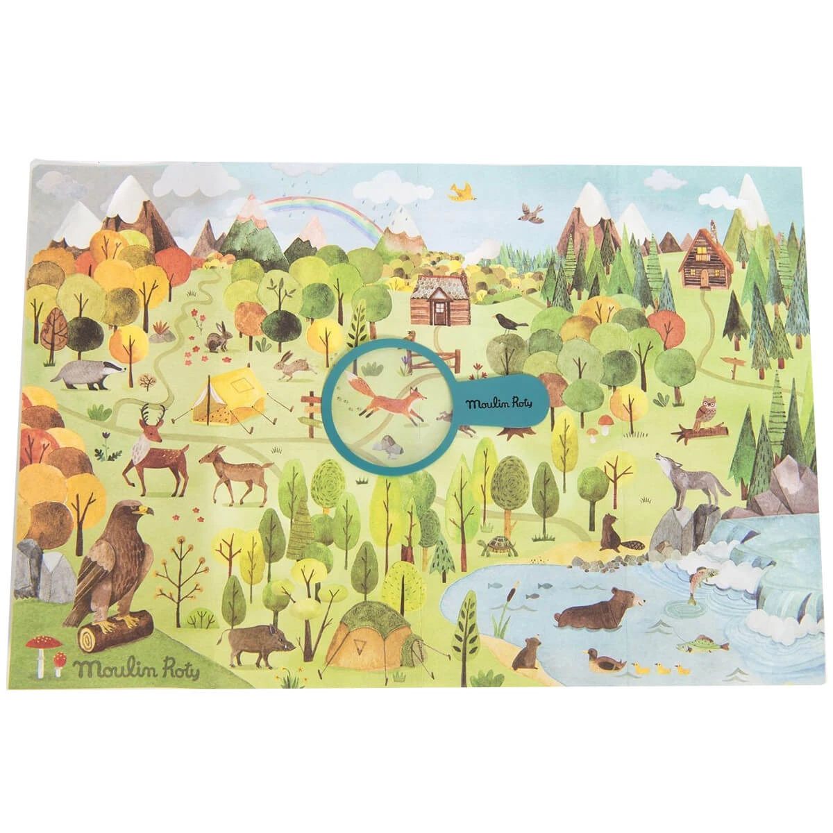 A puzzle and an observation game to discover everything that is hidden in the depth of the forest. Assemble the puzzle and with the help of the mini magnifying glass, look for all the marine animals. Includes a poster with the names of the animals in English and French. And then everything is collected in the practical cardboard tube.