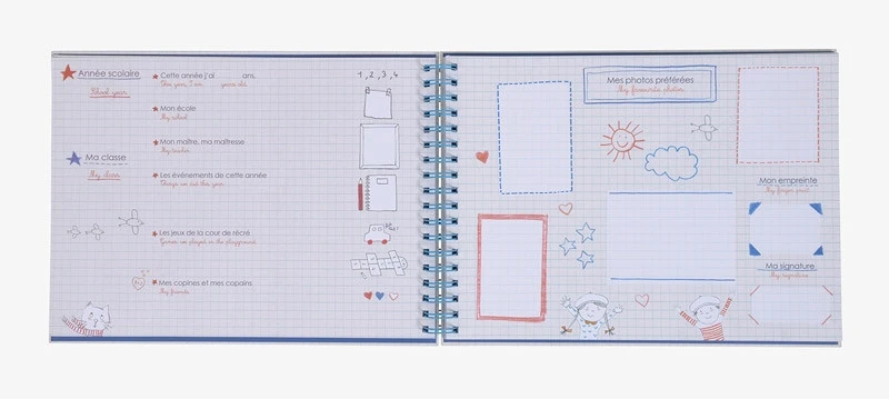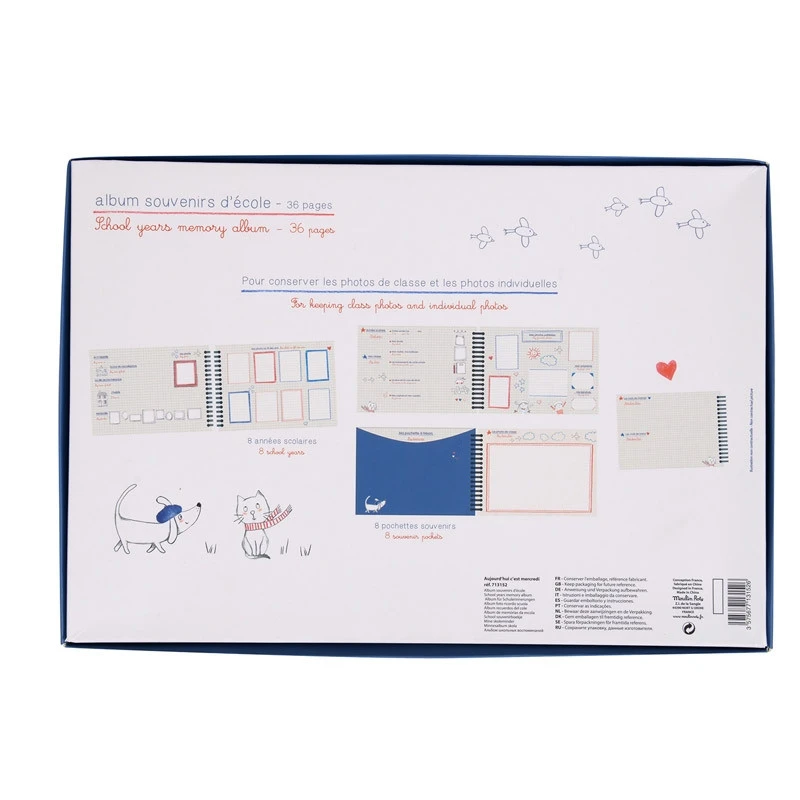 Bellissimi i quaderni di Moulin Roty per conservare i migliori ricordi della scuola e degli amici! Grazie ha 36 pagine per 8 anni di scuola, contiene tutti i momenti preziosi dell’infanzia con ogni volta: 1 pagina di presentazione, 1 pagina di foto e una bustina per i tesori. Dimensioni 34 x 24,5 cm Dettagli materiali carta stampata