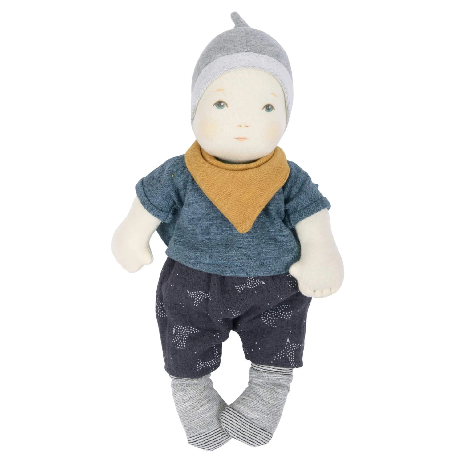 Dalla collezione Les Bébés di Moulin Roty – due bambole morbide da coccolare, portare a passeggio e vestire. Nella collezione un bimbo e una bimba, che i più piccoli possono adottare. I loro corpi morbidi e arrotondati significano che si adattano perfettamente alle manine dei bimbi. Le bambole indossano graziosi abiti di cotone con il gioco di vestirsi e spogliarsi! Rotondo e accogliente per le mani dei più piccoli, con la faccia di cotone illustrata e stampata. Per coccolare davvero, e indossa una camicia a fantasia, pantaloncini, calzini e persino un cappello abbinato al suo outfit! Dimensioni: 32 cm Materiale: Cotone, Viscosa, Spandex. Lavabile a 30°C con ciclo lana. Non mettere in asciugatrice.