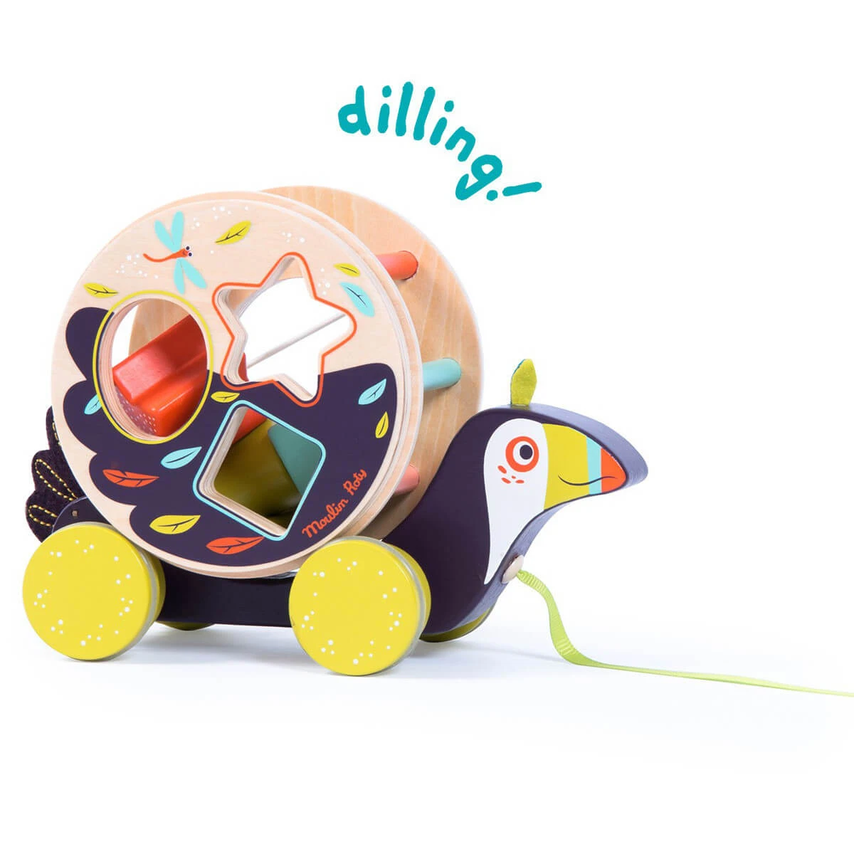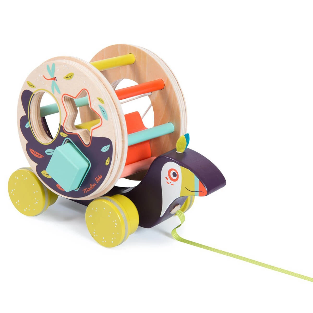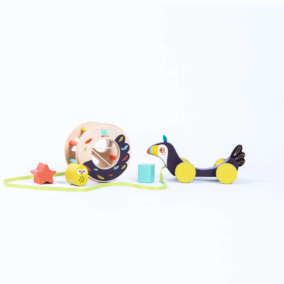 This drag will accompany your baby’s first steps and help him develop his global motor skills. In addition, the box has three geometric shapes and a bell so that it learns colors and develops fine motor skills. The box can be removed from the dragging and used as a rolling pin to play on the ground, also favoring crawling.