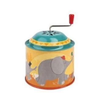 Carillon in latta Circo Un gioco che accompagna l’infanzia dei bambini da intere generazioni. Bellissimo anche come regalo! Questo modello in latta, dai colori vivaci, ritrae la parata del circo con elefanti, domatori, orsi e tanti altri simpatici animali. Facendo girare la leva si ascolta una musica dolce e melodiosa.
