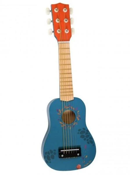 A wooden guitar for budding musicians, with 6 metal strings just like a pro! Painted in blue and brick colours, it is illustrated with a panther design with feathers arranged around the sound hole. Helps develop the little ones’ sense of rhythm, motor skills, and interest in music. Perfect for young budding musicians, this guitar makes a great gift. Dimensions: 53.5 cm Age: Suitable for age 3 years+ Material: plywood, plastic THE BRAND Moulin Roty, a recognised brand in the children’s toy and Childrens interior and nursery segment, has been creating comforters, toys, world of gentleness and colour for little ones for 45 years. Their pieces are full of charm and personality, not to mention great quality that will stay with your children for years.