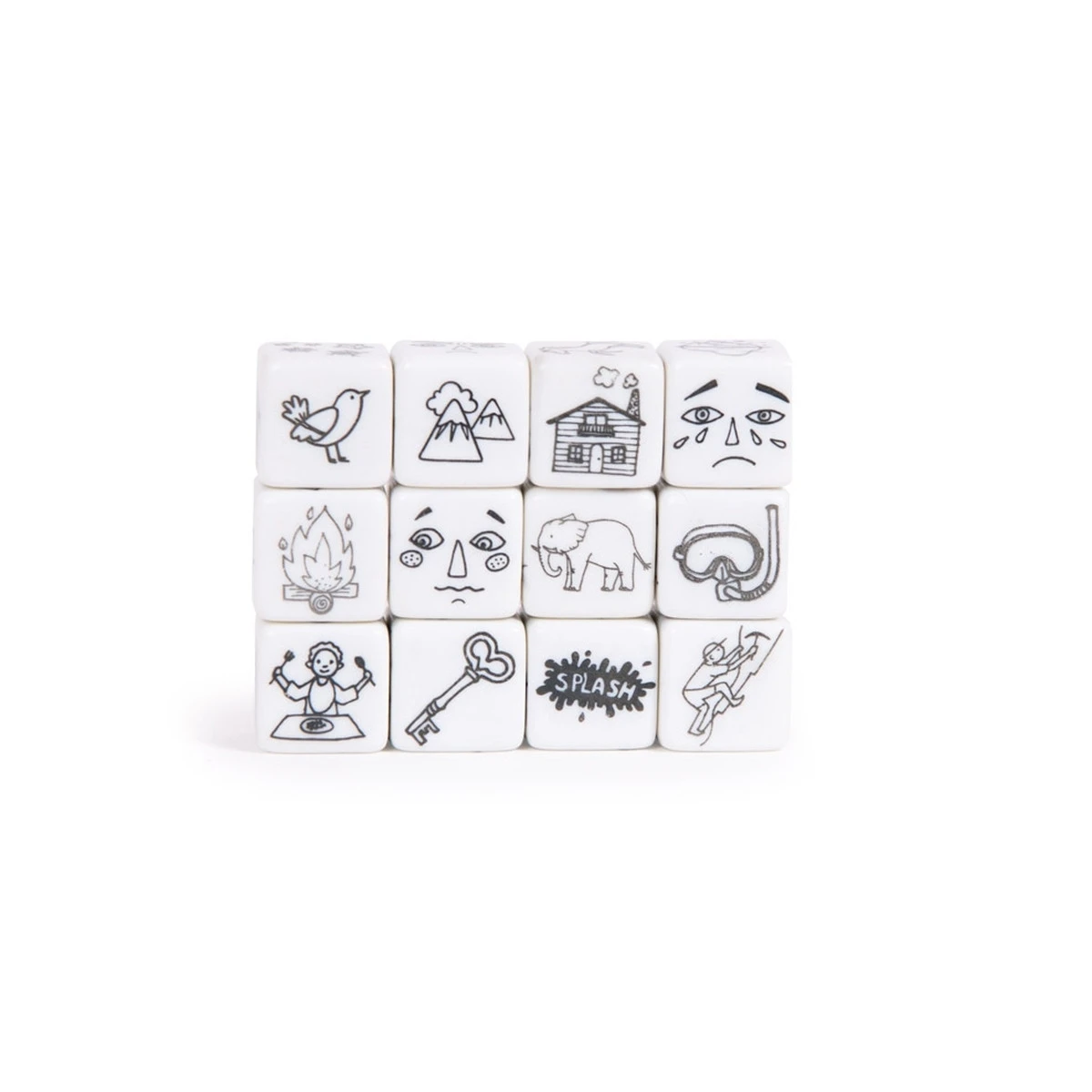 Dadi racconta storie Le Jardin Moulin Roty. Lanciate i nove cubi e usate le immagini per creare una storia. Grazie alle infinite combinazioni e possibilità, i dadi racconta storie sono perfetti per le favole della buonanotte, i viaggi, l’intrattenimento durante le attese, il gioco condiviso! Un gioco che stimola il linguaggio e la capacità di immaginare. Dimensioni 13,5 x 13,5 x 4 cm Dettagli materiali policarbonato Istruzioni per la cura Lavabile con un panno morbido e umido. Età Dai 4 anni