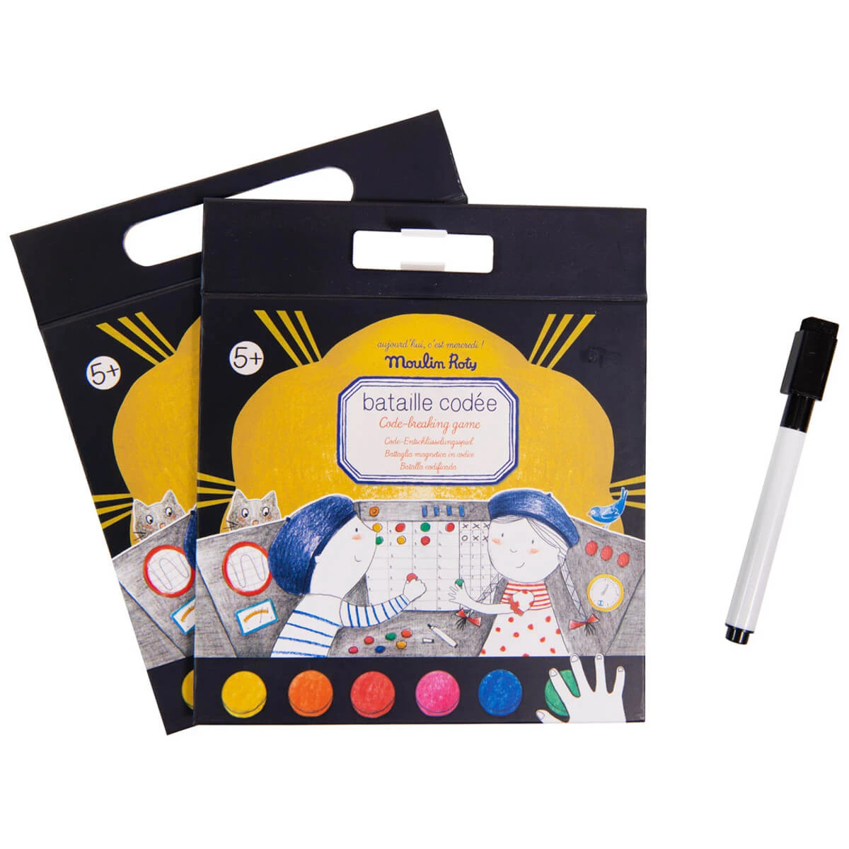 Este juego magnético es ideal para desarrollar la lógica y el pensamiento crítico. El objetivo consiste en descifrar el código de colores del otro jugador lo más rápido posible. Incluye un rotulador de tinta lavable, imanes de 6 colores y 2 tableros de juego. Ideal para llevar de viaje.