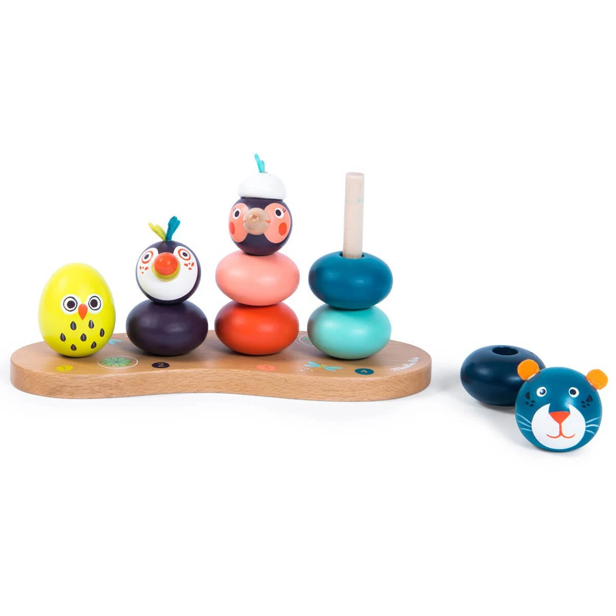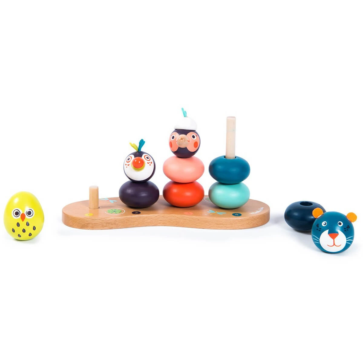 With this stackable your little one will develop fine motor skills while starting to count and identify colors and different animals. Its bright colors and funny characters will enchant you. Pieces: 11. Material: Wood.