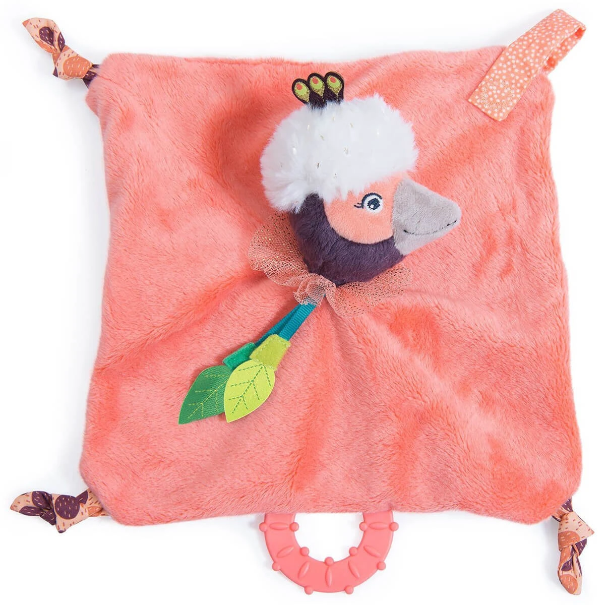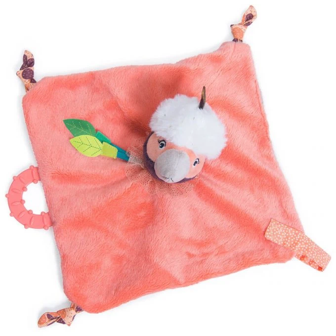 A soft doudou to accompany your baby’s sleep and that can also be used as a teether. Includes grip to hold the pacifier.