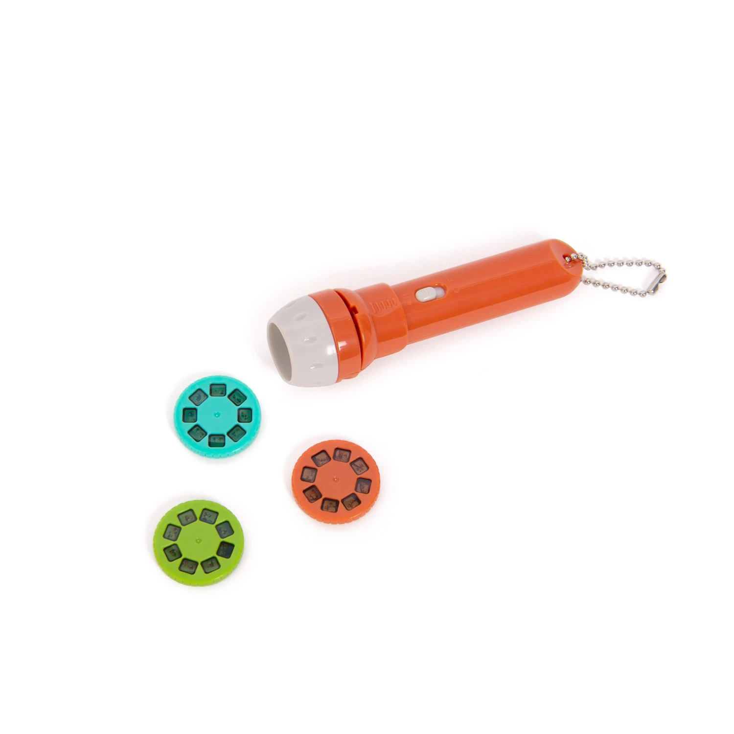 Lampe torche de poche o� chacun des 3 disques projet�s sur le mur raconte une histoire. Elles racontent les aventures joyeuses et color�es des amis de la Jungle. Un instant magique pour d�velopper l’imagination des enfants� Age : D�s 3 ans. D�tail composition : # Plastique ABS.