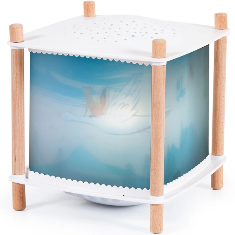 Reassuring light point: As soon as you light it, the heat of the bulb, like a light breath, turns a propeller: As if by magic, the decor starts to spin to tell a story. Soft colors are then diffused in the room. It is the ideal companion to reassure children and accompany them to the land of (beautiful) dreams! It is not reserved for babies, young children up to 7-8 years old will certainly continue to ask for it!