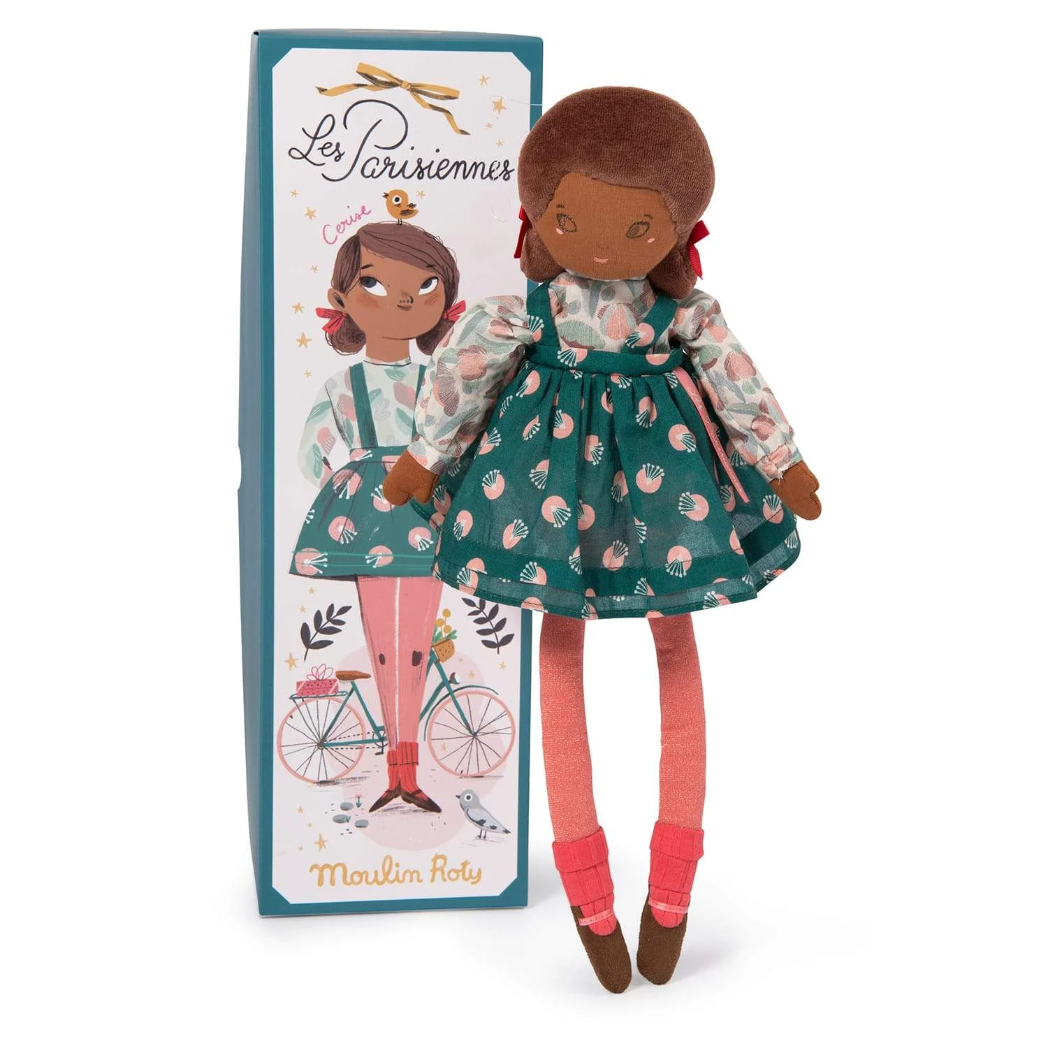 La collezione di bambole Les Parisienne di Moulin Roty farà impazzire le vostre bambine. Les Parisiennes di Moulin Roty, con illustrazioni di Lucille Michieli! Ecco Mademoiselle Cerise, alta 39 cm! Un mago elegante. Nel conservatorio tra tessuti, una macchina da cucire e forbici, indossa una camicetta con maniche a sbuffo, una gonna a pieghe con bretelle e fiocchi per capelli che sembrano magici. Questa collezione è progettato come set regalo con la confezione illustrata e presenta tratti di matita rinfrescanti e delicati per una sensazione poetica. Fiori, animali e nastri sono nascosti su tutte le scatole, per un tocco raffinato. Lavabile a 30°C con ciclo lana. Non mettere in asciugatrice.
