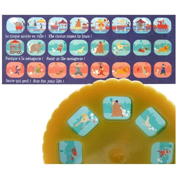 Una linterna proyector con tres discos con diferentes historias de un circo. Cada disco contiene 8 imágenes. 16 x 4 x 4 cm. Viene con 3 pilas LR 44. Moulin Roty es una marca francesa que se inició en 1972 con 20 amigos que aspiraban a compaginar vida y trabajo; decidieron comprar un antiguo molino en ruinas, remodelarlo instalarse allí con sus familiar e iniciarse en la aventura de crear juguetes artesanos. Con más de 40 años de experiencia siguen fabricando juguetes con aire antiguo pero adaptados a nuestra era. Trabajan con materiales y diseños de gran calidad seleccionados en Europa.