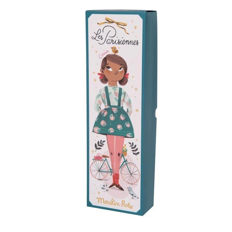 This gorgeous Parisian rag doll by Moulin Roty is dressed in her patterned blouse and delicate dress, ready to go out playing all day long!