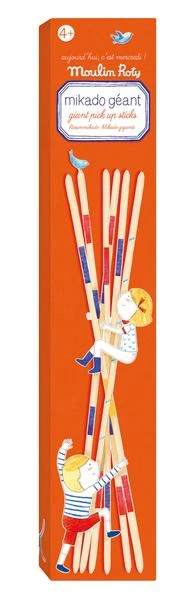 Un mikado en versión gigante ¡para grandes tardes de juego! Un juego muy divertido pero también un ejercicio de precisión en el que los jugadores desarrollarán su concentración y coordinación, así como su capacidad de análisis para optar por la mejor estrategia. Empezamos cogiendo los palos verticalmente y dejándolos caer al azar. Después los jugadores deberán eliminar uno a uno los palos sin mover los otros. Pierde quién mueva los palos y gana el que más puntos haya obtenido, no todos los palos valen los mismo puntos, por ello es importante analizar y ser buenos estrategas para ganar. Vienen en una caja de cartón. Dimensiones: 2,5 x 9,5 x 50,5 cm. Material: Bambú. A partir de 4 años. Moulin Roty es una marca francesa que se inició en 1972 con 20 amigos que aspiraban a compaginar vida y trabajo; decidieron comprar un antiguo molino en ruinas, remodelarlo instalarse allí con sus familiar e iniciarse en la aventura de crear juguetes artesanos. Con más de 40 años de experiencia siguen fabricando juguetes con aire antiguo pero adaptados a nuestra era. Trabajan con materiales y diseños de gran calidad seleccionados en Europa.
