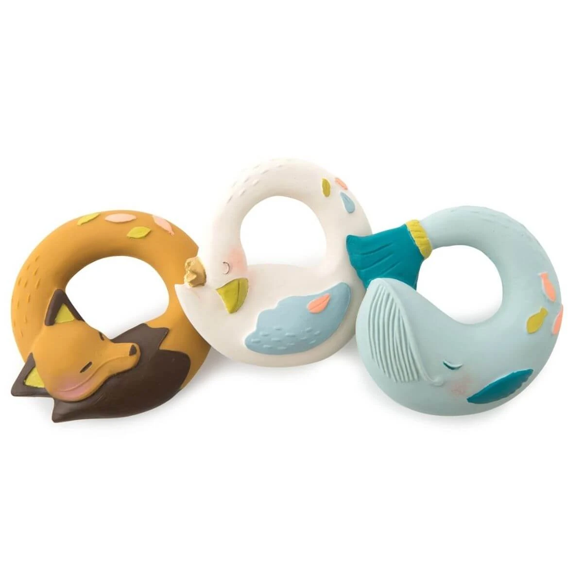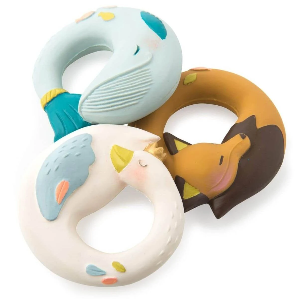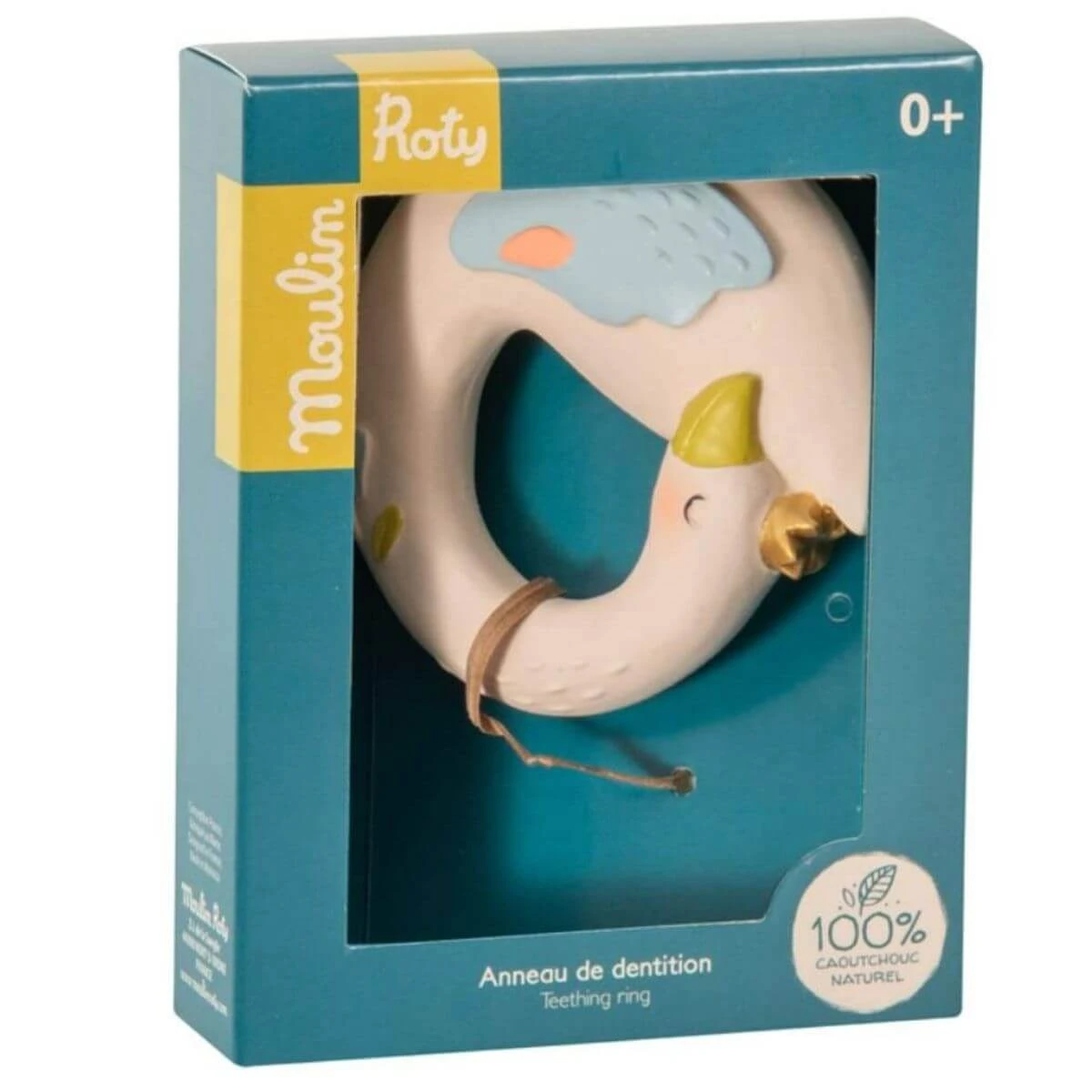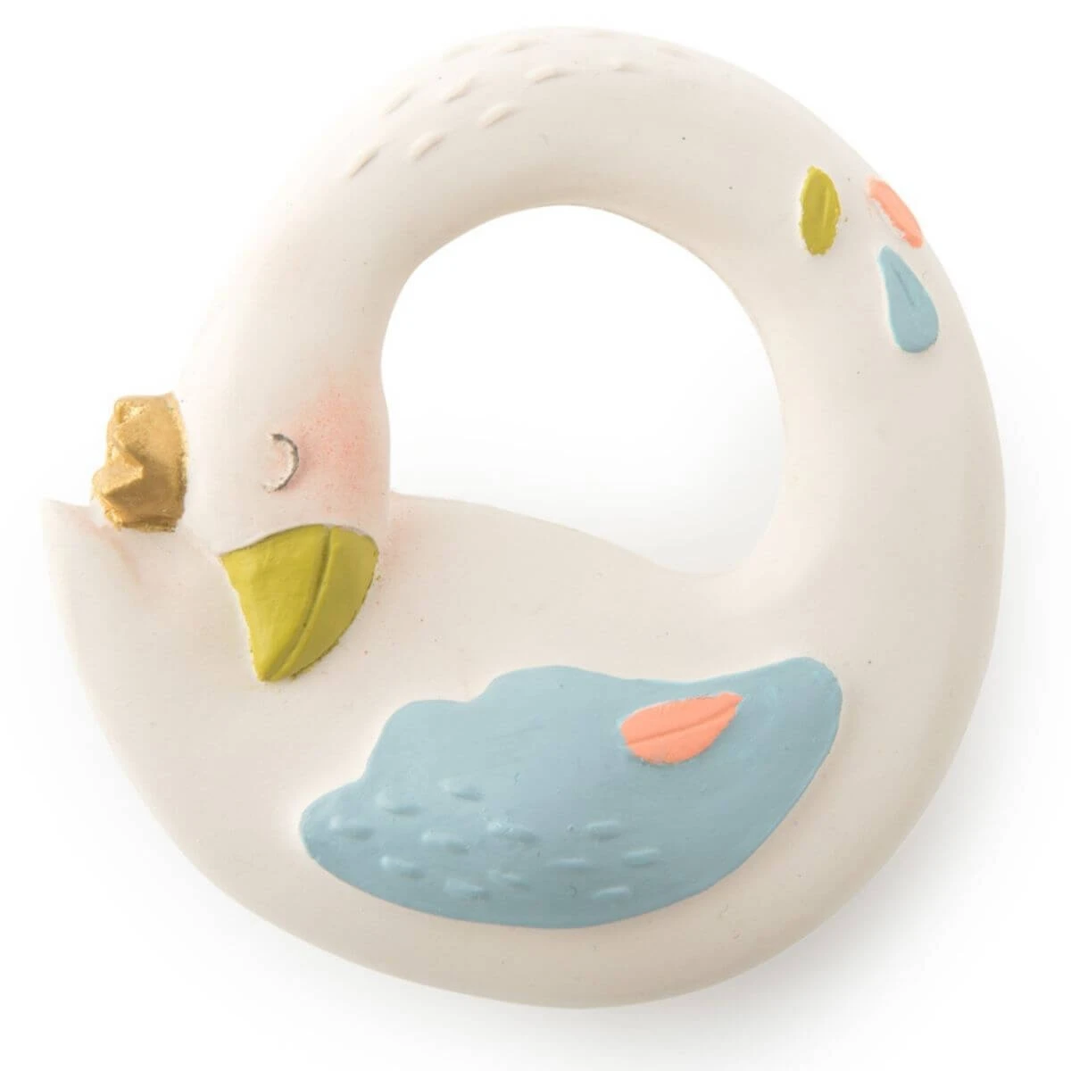 Este mordedor con forma de oca está hecho de caucho 100% natural y tiene una anilla para que tu bebé lo pueda sujetar fácilmente. Ideal para la estimulación sensorial y para calmar las molestias del proceso de dentición.