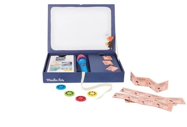 Very easy to manipulate: insert one of the 5 discs in the flashlight, turn on and project the images on the flap of the box, on a wall or on the ceiling. By rotating the disc, the scenes of the light tale go by and by rotating the lens, the sharpness of the image is adjusted according to the distance.
