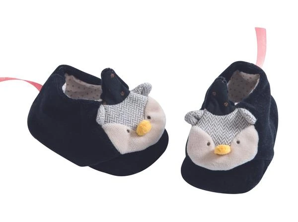 Product description Adorable little wizard’s owl slippers in cosy black velvet and gold-spotted cotton voile. A tab with a decorative owl’s head ensures a comfortable fit for baby’s foot. Machine washable at 30°C on wool cycle. No tumble dry. Suitable from birth. SIZE 0-6M 11cm Long THE BRAND Moulin Roty, a recognised brand in the children’s toy and Childrens interior and nursery segment, has been creating comforters, toys, world of gentleness and colour for little ones for 45 years. Their pieces are full of charm and personality, not to mention great quality that will stay with your children for years.