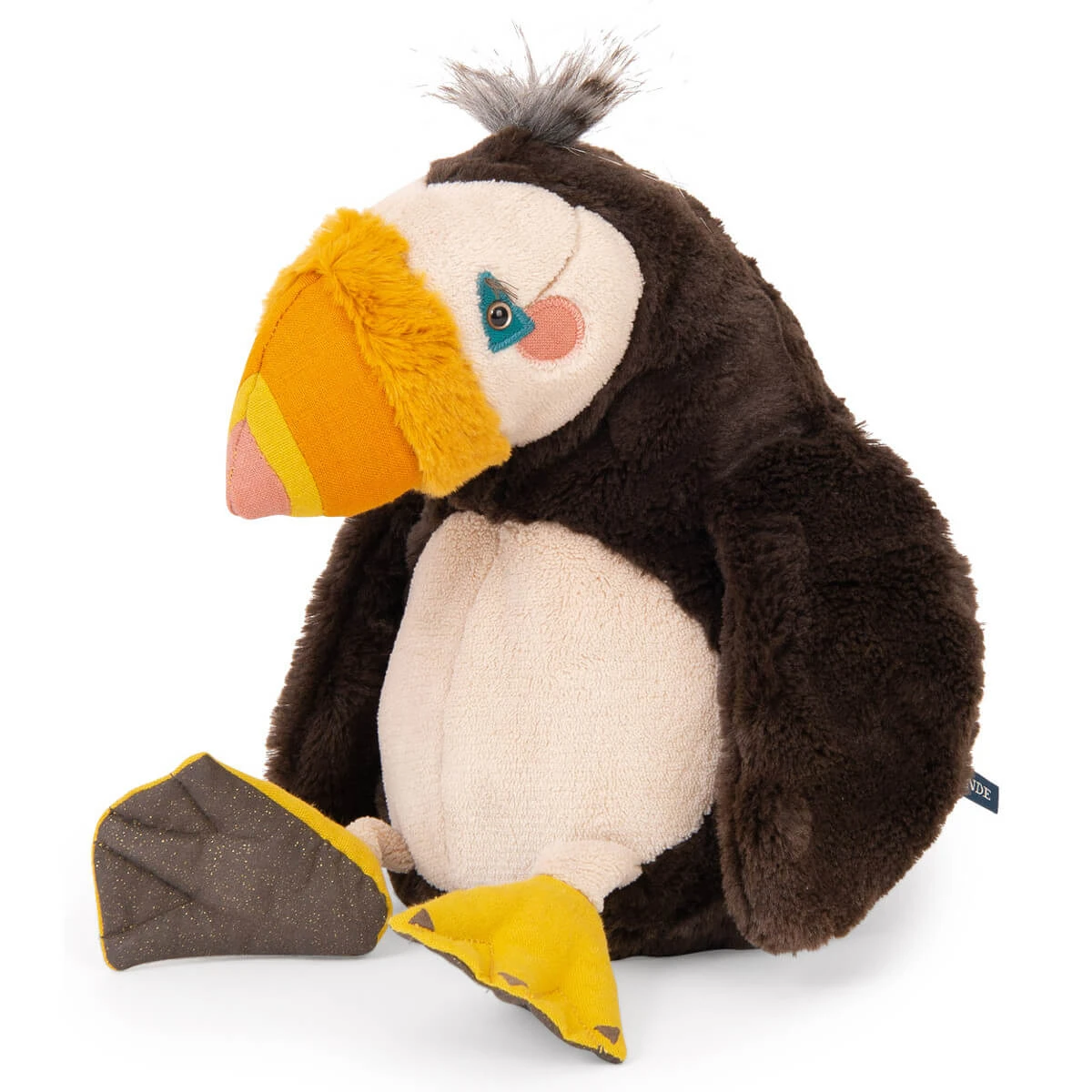 Este suave pájaro de peluche está listo para hacer volar la imginación de tu peque hasta lo más alto y acompañarlo en todas sus aventuras. Se sienta sobre su cuerpo y su pico es de lino. En esta colección Moulin Roty nos lleva de viaje por el mundo y nos conciencia de la importancia de proteger el reino animal, donando 1€ a la asociación “Agir pour la diversité” por cada peluche vendido.
