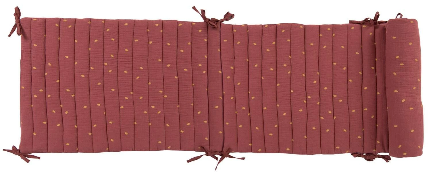 Morbidissimo Paracolpi per lettino in Cotone Biologico per neonati decorato nell’inconfondibile stile francese! I paracolpi di Moulin Roty sono realizzati in materiali di alta qualità. Pieno di morbidezza, soffice e offre sicurezza al bambino nella culla. Questi paracolpi sono stampati con un motivi floreali. uno con un topino che dorme su una foglia con i laccetti in cotone di colore rosa cipria fe l’altro color terracotta con laccetti in cotone di colore terracotta. In questa collezione troviamo tonalità e motivi che sono facili da abbinare e mescolare, per adattarsi a tutte le stagioni! Protegge dagli urti ed evita che il bambino passi le sue braccia o gambe attraverso le sbarre del lettino. “Apres la Pluie” Dopo la Pioggia è una nuova collezione di Moulin Roty immaginata da Lucille Michieli. Ispirati ai ricordi d’infanzia, i personaggi incarnano spiriti gentili che vengono a rifugiarsi sotto le lenzuola dopo una passeggiata nella foresta. Una collezione da sogno trasportata da colori e materiali naturali di qualità come lino e cotone biologico. Misure: L 180 cm x H 40 cm Composizione: Cotone Organico certificato GOTS / OEKO-Tex (coltivazione senza pesticidi e fertilizzanti), imbottitura in poliestere. Cura: Lavatrice a 30°, ciclo lana o delicati.
