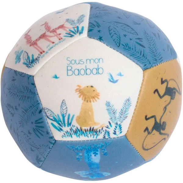 Suave y colorida, ¡ésta será la primera pelota de los pequeños y pequeñas! Con ella, podrán aprender a impulsarla y hacerla rodar, y todo sin hacerse daño. Además, podremos identificar diferentes animales entre las imágenes que la decoran. Un pequeño juguete simple y alegre que desarrollará las habilidades motoras de los más pequeños y pequeñas. Medidas: 10 cm de diámetro. Edad: +6 meses