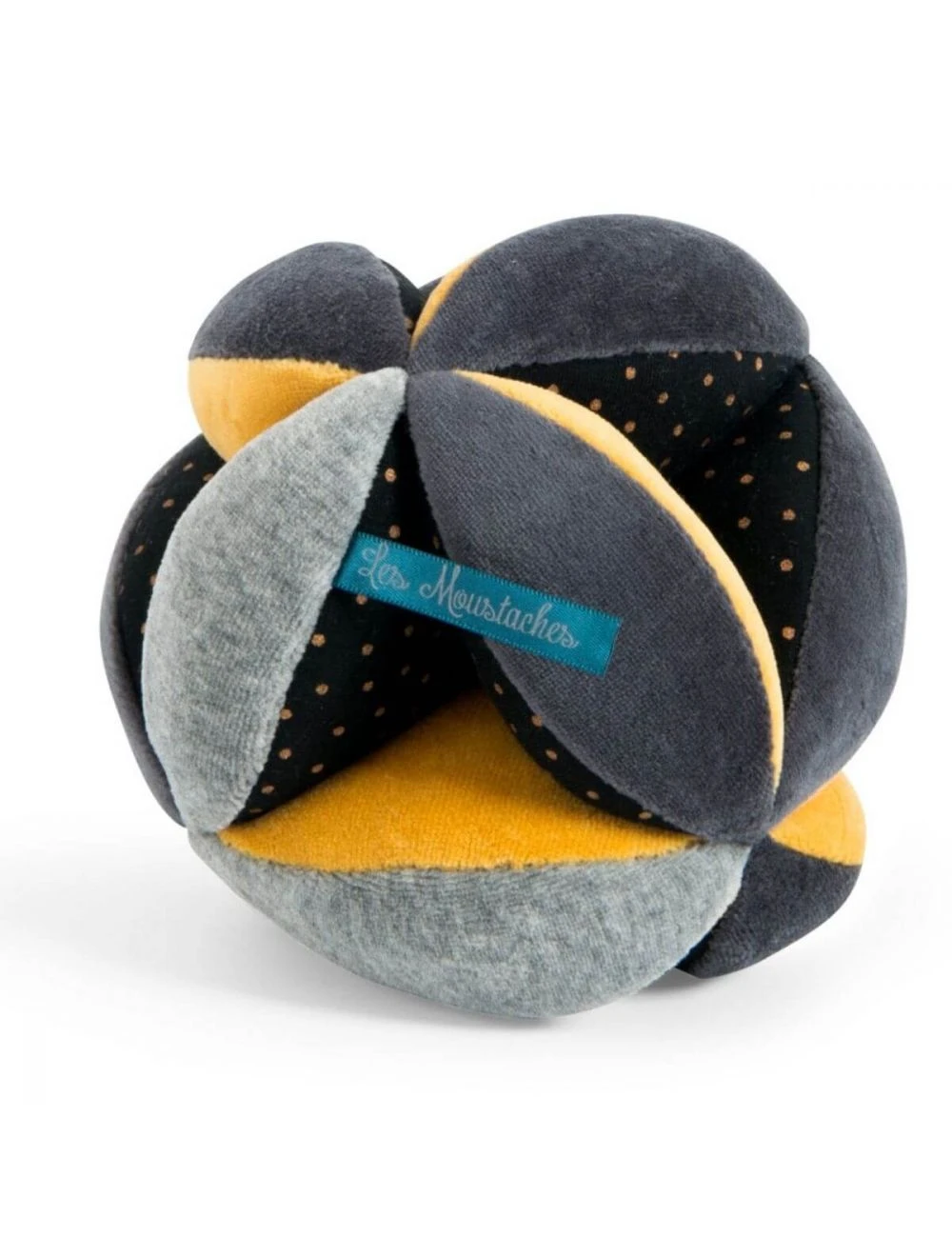 Una pelota sensorial de inspiración Montessori perfecta para estimular sensorialmente a tu bebé desde su nacimiento. Tiene distintas texturas, las hendiduras de la tela facilitan su manipulación y exploración, al ser redonda favorece el movimiento corporal y el gateo y en su interior esconde un cascabel que tintinea. Puedes lavarla a máquina (con el ciclo de ropa delicada) y es de la colección Moustaches de Moulin Roty. A partir de 0 meses.