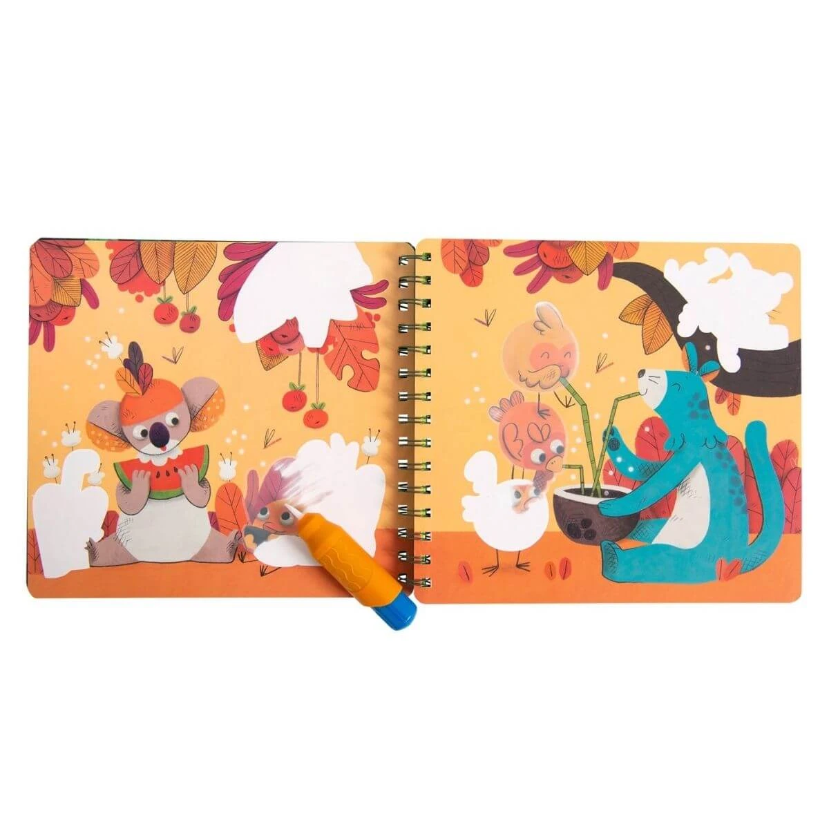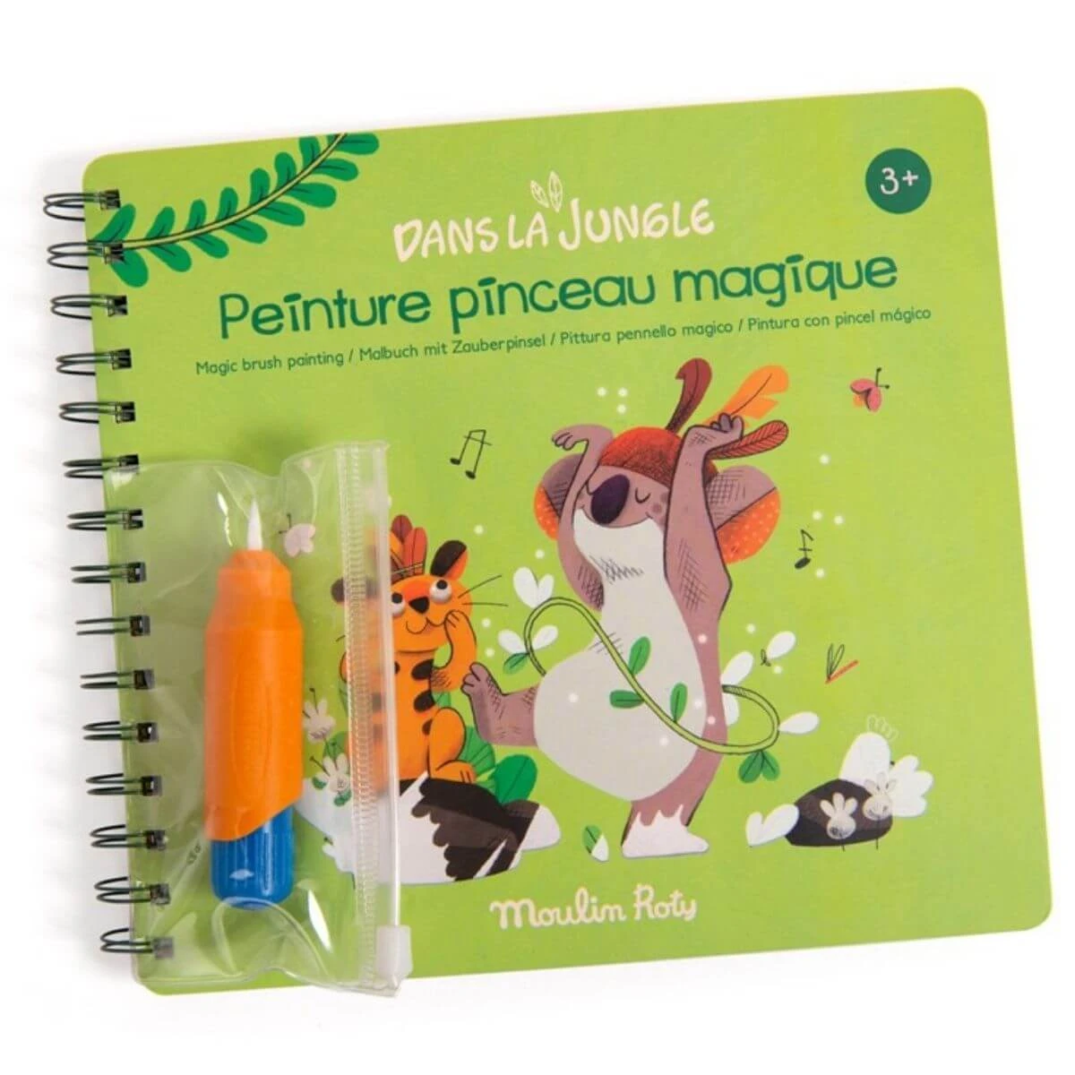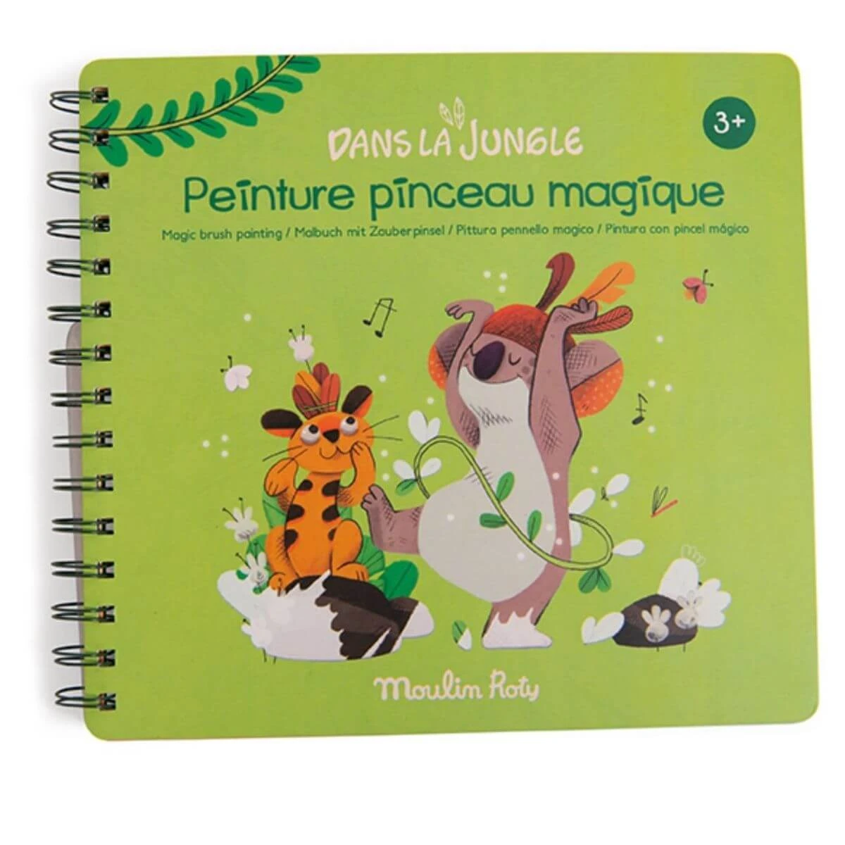 Llena el pincel mágico de agua y pinta este cuaderno lleno de preciosas ilustraciones de la Jungla de Moulin Roty. Los dibujos aparecen y cuando se secan, desaparecen para que puedas volver a pintarlos una y otra vez. ¡Es mágico!
