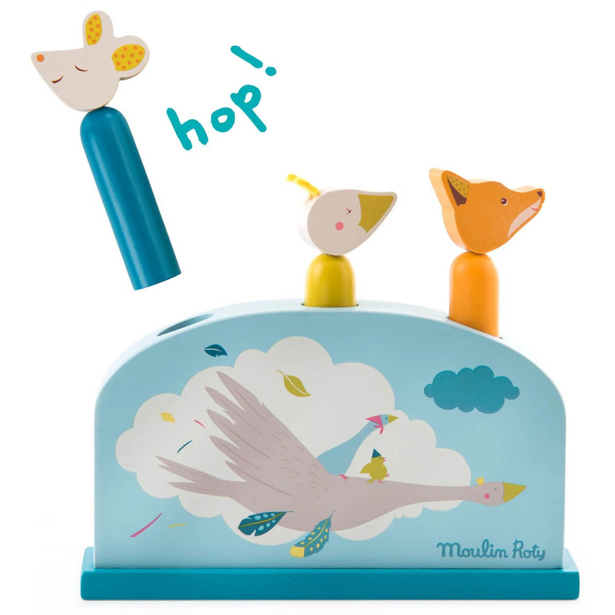Your baby will clap enthusiastically every time he hits the animals and watches them jump. She will love it! Perfect for understanding cause and effect and developing fine motor skills. Pieces: 4. Material: Wood.