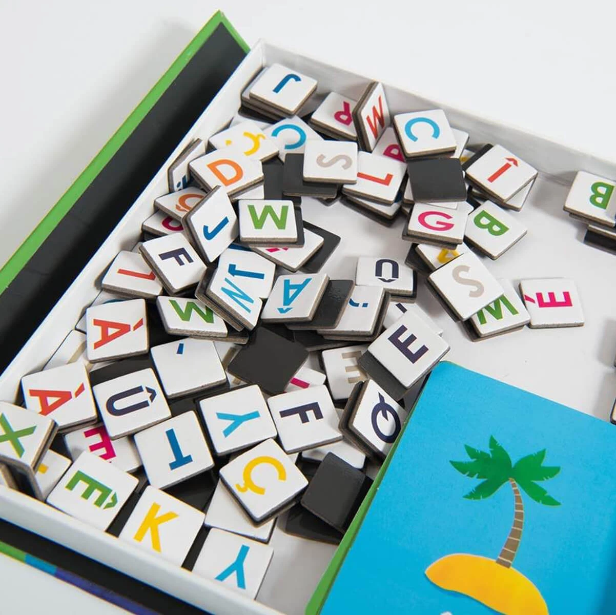 A fun magnetic game to learn English and French words. Includes 168 magnetic letters and 26 illustrated cards with different objects and animals. The goal is to reproduce the drawings using letters or create other words that interest your little one. Ideal for developing language and reading and writing in the most fun way.
