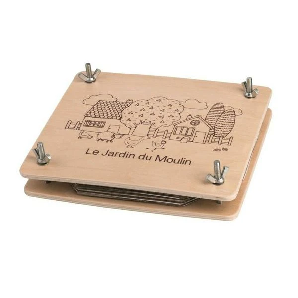 Moulin Roty es una marca francesa que se inició en 1972 con 20 amigos que aspiraban a compaginar vida y trabajo; decidieron comprar un antiguo molino en ruinas, remodelarlo instalarse allí con sus familiar e iniciarse en la aventura de crear juguetes artesanos. Con más de 40 años de experiencia siguen fabricando juguetes con aire antiguo pero adaptados a nuestra era. Trabajan con materiales y diseños de gran calidad seleccionados en Europa. Una bonita prensa de madera, con varias láminas de secado para colocar las hojas y flores recolectadas en los paseos por la naturaleza y dejarlas secar. Dimensión : 21 x 18 x 5 cm