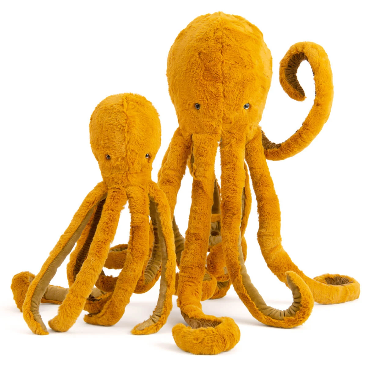 Este pulpo de peluche está listo para abrazar a tu peque con todos sus tentáculos, suaves y de terciopelo. De un precioso color dorado, es un muñeco precioso para decorar la habitación y para inventar mil aventuras por el océano. En esta colección Moulin Roty nos lleva de viaje por el mundo y nos conciencia de la importancia de proteger el reino animal, donando 1€ a la asociación “Cetasea” por cada peluche vendido.