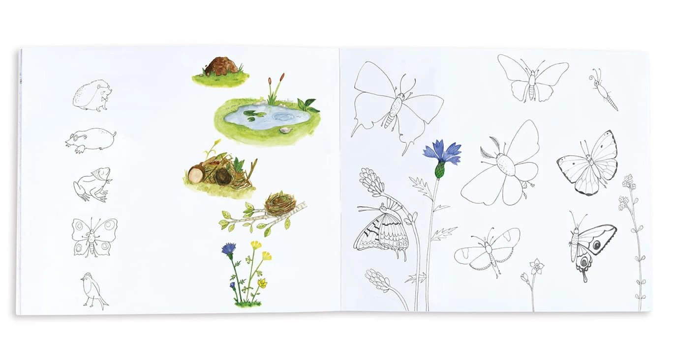 Bellissimo Quaderno da colorare con attività per bambini. Ore di intrattenimento per il tuo bambino – imparando giocando! Realizzato in Francia, questo quaderno è pieno di illustrazioni a matita con tante attività creative per scoprire la natura, gli uccelli, gli alberi, gli insetti, i fiori e tanto altro! Le diverse attività includono: labirinti, gioco di abbinamento, gioco di differenze etc. P ratico e divertente, tutti i fogli possono essere colorati e permetteranno al tuo piccolo di stimolare la sua creatività. Pagine: 36 (francese e inglese) Dai 3 anni. Dimensioni: 27 x 21 cm.