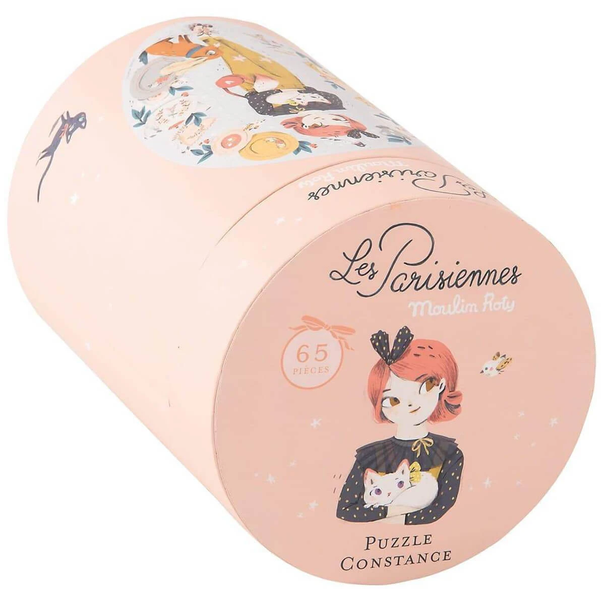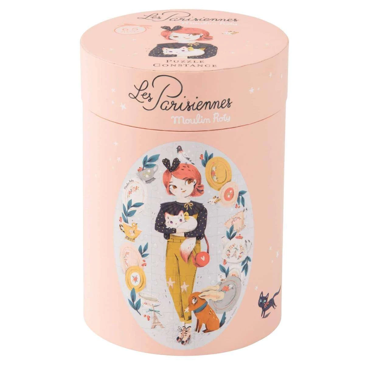 Beautiful puzzle from the Moulin Roty Parisian collection. The protagonist is Constance, who carries her cat in her arms and has her puppy at her feet. Ideal to develop concentration and observation of your little one. It comes in a beautiful box illustrated by designer Lucille Michieli.