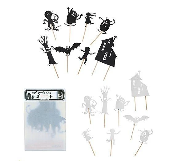 Un set de sombras para jugar a inventar historias. Lo único que hace falta es una pared blanca y un foco de luz sobre las siluetas. Un juego clásico que estimula la imaginación de los niños. El set contiene 8 siluetas hechas de cartón. Por un lado son negras y por el otro lado fosforescentes, y brillan en la oscuridad! Moulin Roty es una marca francesa que se inició en 1972 con 20 amigos que aspiraban a compaginar vida y trabajo; decidieron comprar un antiguo molino en ruinas, remodelarlo instalarse allí con sus familiar e iniciarse en la aventura de crear juguetes artesanos. Con más de 40 años de experiencia siguen fabricando juguetes con aire antiguo pero adaptados a nuestra era. Trabajan con materiales y diseños de gran calidad seleccionados en Europa. Dimension del paquete: 16 x 24 cm.