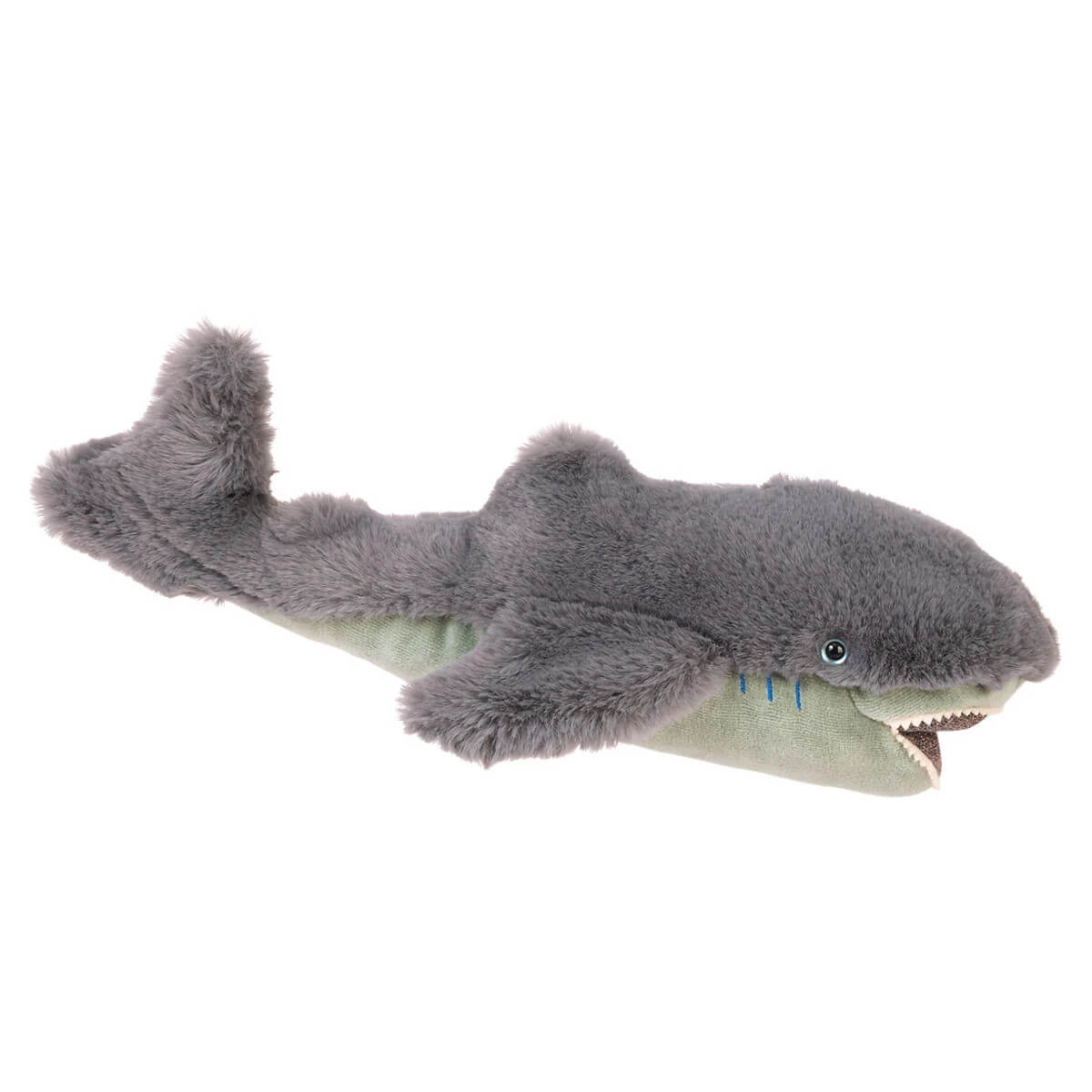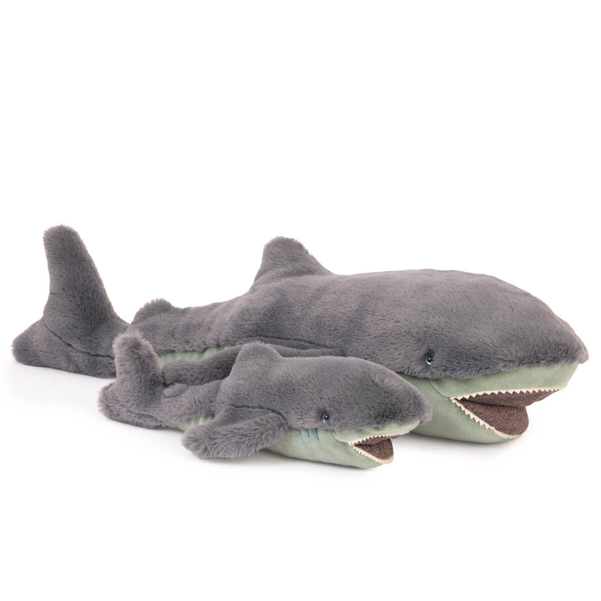 Original peluche de tiburón de tamaño pequeño para que tu peque pueda agarrarlo fácilmente y jugar con él en todos lados. En esta colección Moulin Roty nos lleva de viaje por el mundo y nos conciencia de la importancia de proteger el reino animal, donando 1€ a la asociación “Cetasea” por cada peluche vendido.