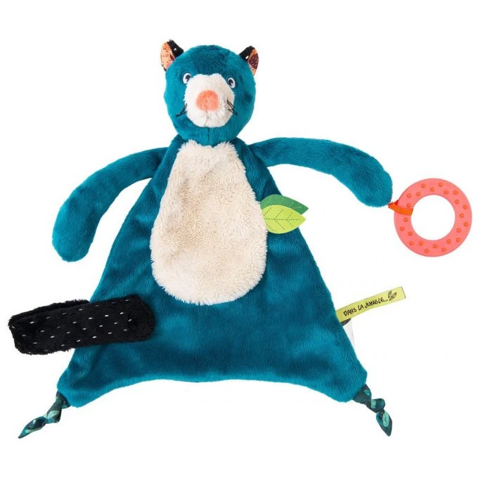 A soft doudou to accompany your baby’s sleep and that can also be used as a teether. Includes grip to hold the pacifier.